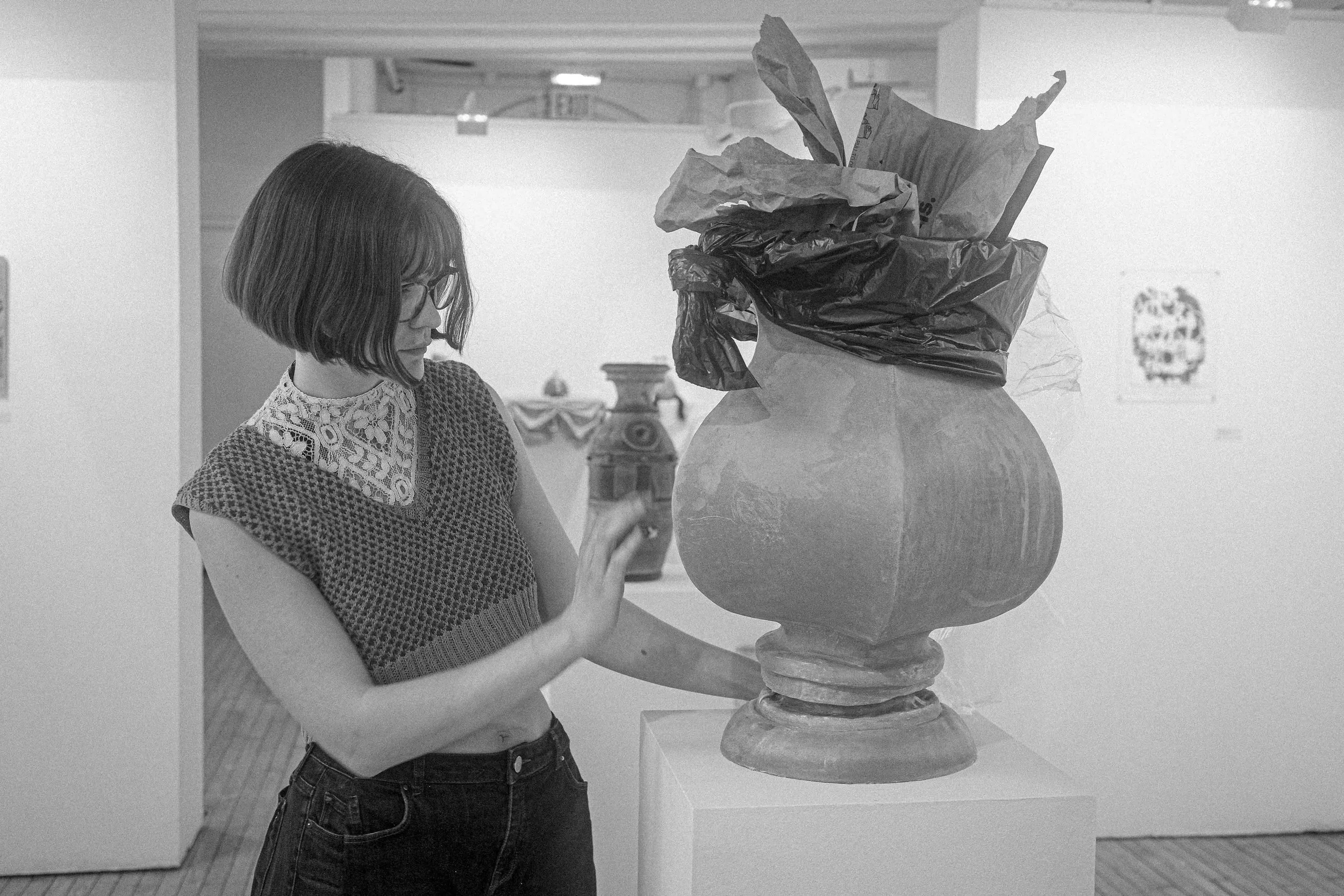Slide 1 Slide 1 (current slide) Paintings Ceramics Textiles Poppy is a London-born, New York-based painter & ceramicist.Her work examines the rules and histories which govern our behaviour, and how they contradict natural instinct.